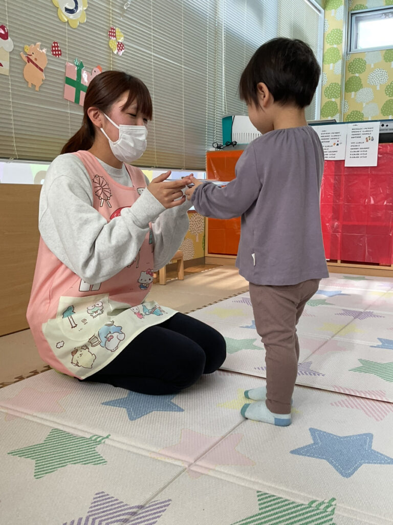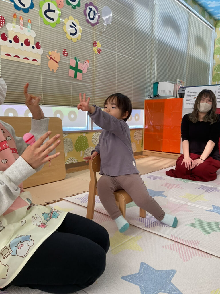 保育者からのインタビューでは、「何歳になりましたか?」「好きな食べ物は何ですか?」という質問に「3歳!」「おかし!」と元気よく答えてくれていましたよ(●´ω`●)