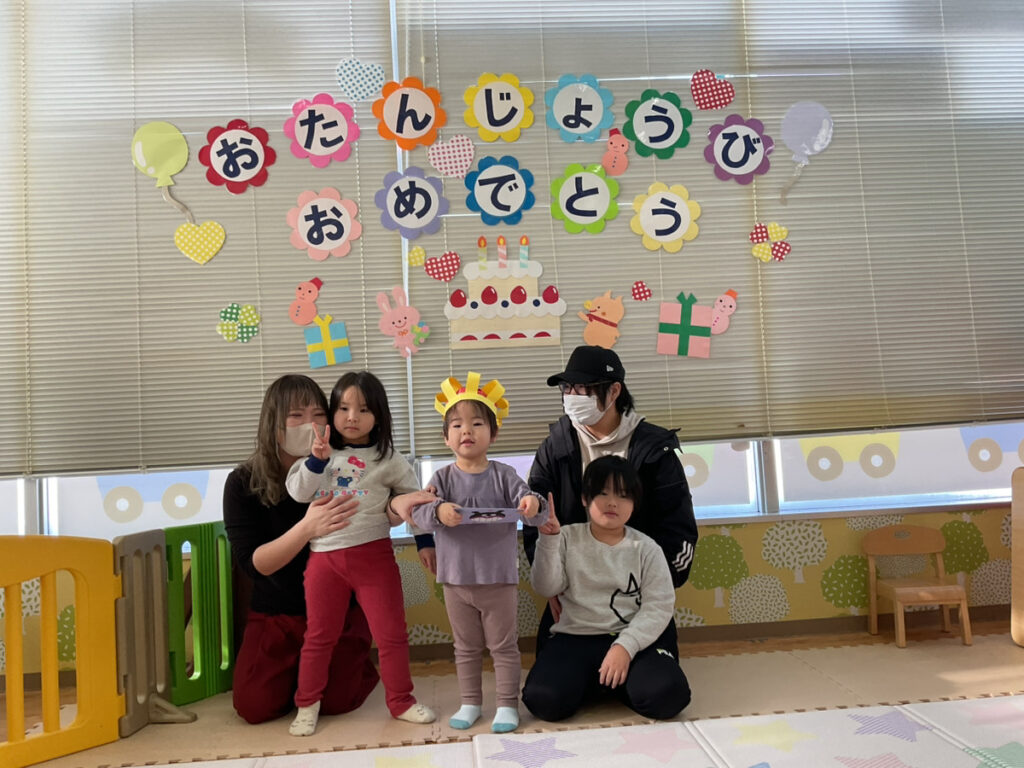最後は大きくなった手形のついたお誕生日カードと王冠をもらい、ご家族みんなで記念撮影をしました。共にお子様の成長を喜び、笑顔溢れる素敵な時間でした✨