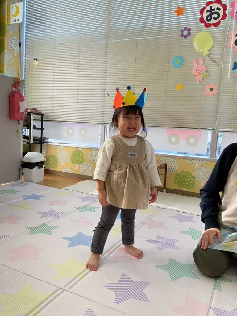 お誕生児さんにみんなで作った冠をプレゼントすると、とても嬉しそうな笑顔がみられました♪
